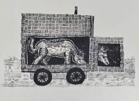 Lubaina Himid, Hyena in a Picnic Basket. Stone Lithograph.